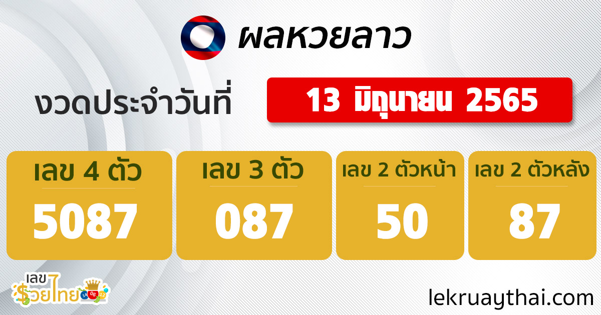 ผลหวยลาว 13/06/65 ตรวจหวยลาววันนี้ ตรวจหวยลาวล่าสุด เลขรวยไทย