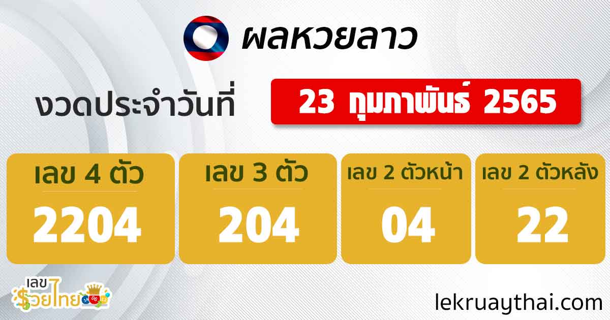 ผลหวยลาว 23/02/65 ตรวจหวยลาววันนี้ ตรวจหวยลาวล่าสุด เลขรวยไทย