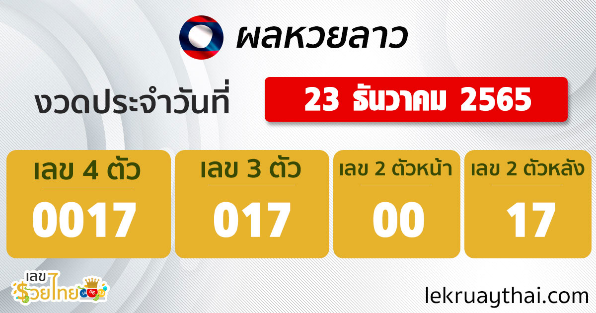 ผลหวยลาว 23/12/65 ตรวจหวยลาววันนี้ ตรวจหวยลาวล่าสุด เลขรวยไทย
