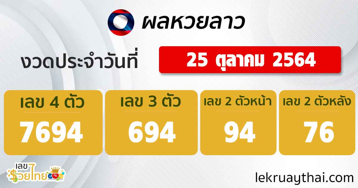 ผลหวยลาว 25/10/64 ตรวจหวยลาววันนี้ ตรวจหวยลาวล่าสุด เลขรวยไทย