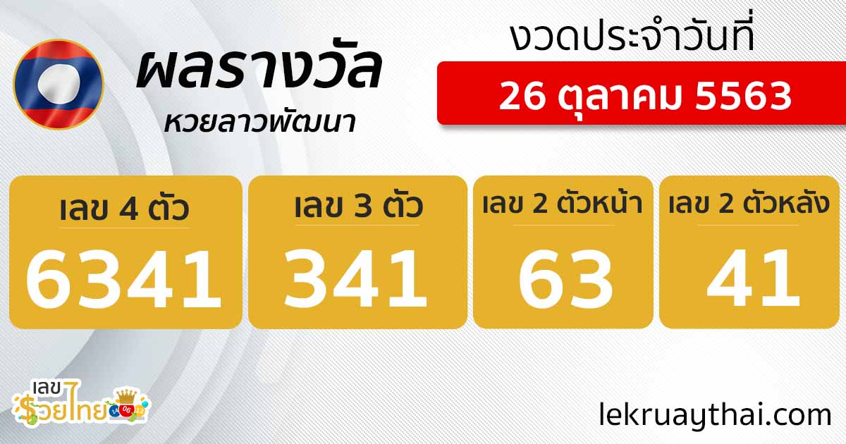 ผลหวยลาว 26/10/63 ตรวจหวยลาว ลาวพัฒนา จาก เลขรวยไทย เว็บไซต์หวยออนไลน์