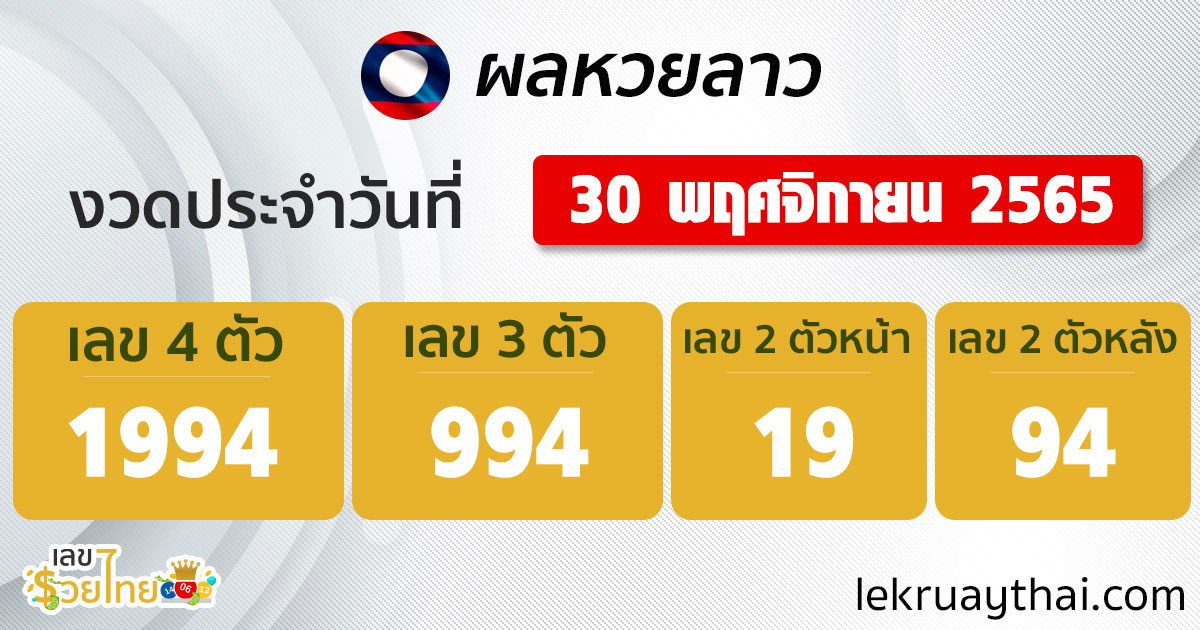 ผลหวยลาว 30/11/65 ตรวจหวยลาววันนี้ ตรวจหวยลาวล่าสุด เลขรวยไทย