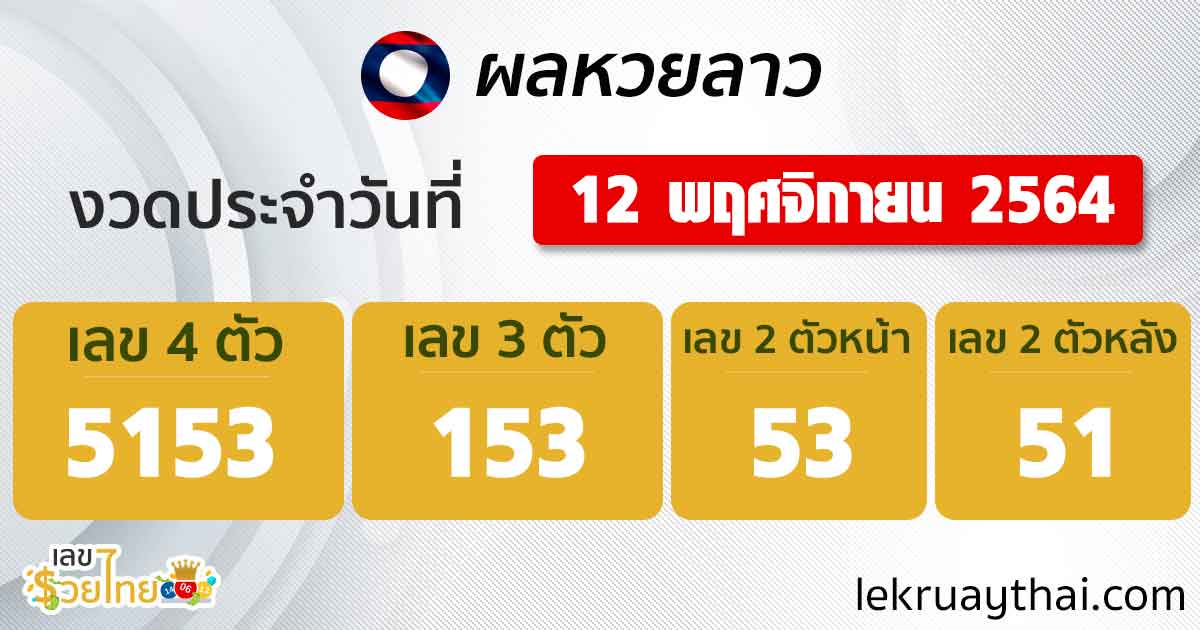 ผลหวยลาว 12/11/64 ตรวจหวยลาววันนี้ ตรวจหวยลาวล่าสุด เลขรวยไทย